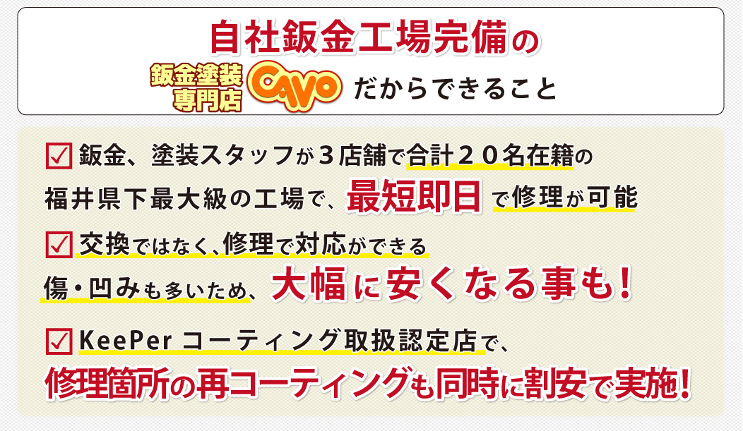 カーボ 福井 鯖江 越前の格安板金/車傷修理1.8万円〜