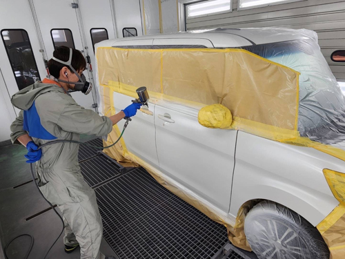 カーボでは自社の板金・修理工場を完備しており、 最新の設備とトップブランドの塗料を使用しております。