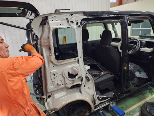バンパー・ドア・フェンダー・ルーフ・ボンネット・バックドア等の車傷を自社の板金・修理工場にて修理をします。