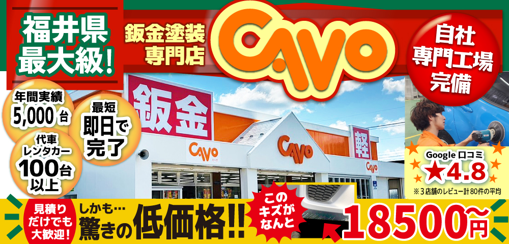 カーボ 福井 鯖江 越前の格安板金/車傷修理1.8万円〜