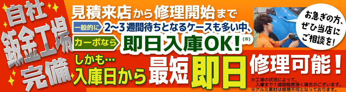カーボでは自社の板金・修理工場を完備しており、 最新の設備とトップブランドの塗料を使用しております。