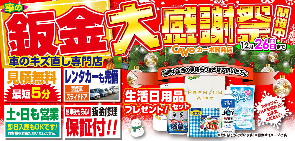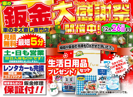 当社の鈑金などの自動車整備関連サービスをご利用の際にも是非チェックしてみて下さい。