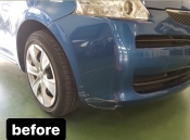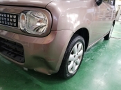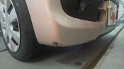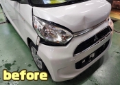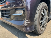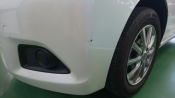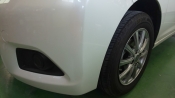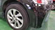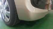 | 左前方の修理です。今回はバンパーの取替ではなく修理で直しています。バンパーとフェンダーの修理は材質が異なります。なので作業の過程が若干違いますが、色違いもなくキレイに仕上がりました。 今回の場合の作業は2日間です。土日でも修理ができるので平日お忙しい方でもご利用いただけます! |