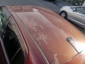 | 今回は、車の天井の修理です。年数による劣化で色がはげてしまいました。劣化による色のはがれは仕方ないですよね・・・長年愛用しているということですね!でも、まだまだ乗り続けるならきれいになった方が気分もよくないですか?みてください!反射して映るくらいピカピカに仕上がりました!長年使っている愛用のお車のご修理もカーボにお任せください!! |