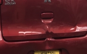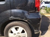 | こんにちは!今回は、右後ろの上の部分のパネルの修理です!バックしているときに看板に気づかずに当たってしまったということです。パネルはヘコんでキズもあります・・・ですが、きれいに直ります!このような鈑金修理は時間がかかり、かなり大変ですが、カーボでは安く!早く!きれいに!直るので一度ご相談ください!!! |