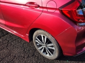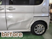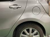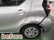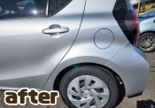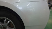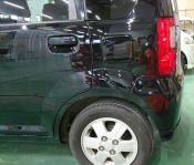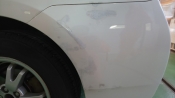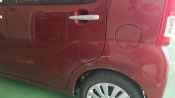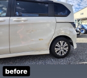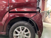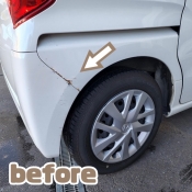| ご修理ありがとうございます。 左後ろを外壁に当てられたということでキズヘコミが出来てしまいました。実は以前も同じ個所を修理をさせていただいておりまして、その修理時に使用した用材(パテ)も剥離してしまっています。 ということで一度全て剥がしてもう一度やり直しということで2度目の修理ですがどこにキズヘコミがあったのかもわからないくらいきれいに仕上がりました! |
