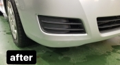| リヤバンパーのキズの塗装修正を行いました。 ボディから外して作業する事で、塗装時の周りの部分のマスキングの箇所を減らす事ができるのではやく作業が出来ます。 |