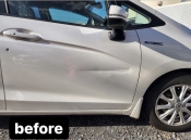 | こんにちは!今回は左側パネルのご修理です。縁石の接触によるヘコミですごくへこんでいます。最近のパネルは薄いので簡単にヘコミが出来てしまいます!やわらかいので修理がしにくいですが、元通りピカピカに仕上げました!大きなヘコミでも諦めず一度カーボにご相談ください!! |