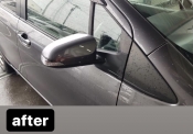 | ご修理ありがとうございます。 今回の修理箇所は、薄いプレスラインという模様があったり、内側に反っていく面の凹み修理ということで、非常に難しい修理でしたが、カーボが誇る熟練のスタッフが全力で修理させていただき、模様も反りもキレイに直りました。カーボは全力でお客様のお車をキレイにさせていただきます。 |