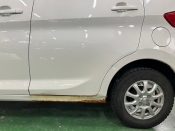 | 修理担当者のコメント | 今回の修理事例はドア下部の凹みとロッカーパネルの鈑金修理になります。 ドアの損傷は軽度ですが、ロッカーパネルの凹みは範囲が広く、錆もかなり進行している状態でした🌀 ロッカーパネル取替が必要な損傷でしたが、修理期間も長期になりますし費用も高額になりますので今回はお客様の希望もあり、頑張って取り替えずに修理させていただきました‼️ 取替よりも修理期間が短く、さらに費用も抑えることができましたので、お客様に満足していただけました🙆 気になる傷、凹みがある方はお早めにカーボにご相談ください!お見積もりは無料ですのでお気軽にお越しくださいませ😌 |